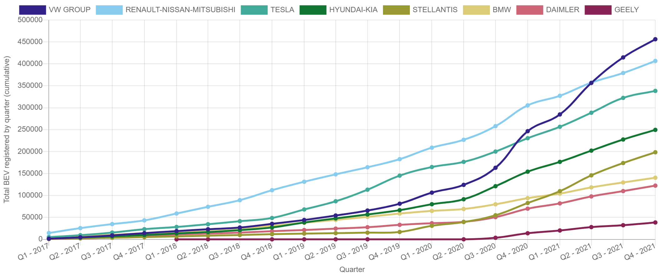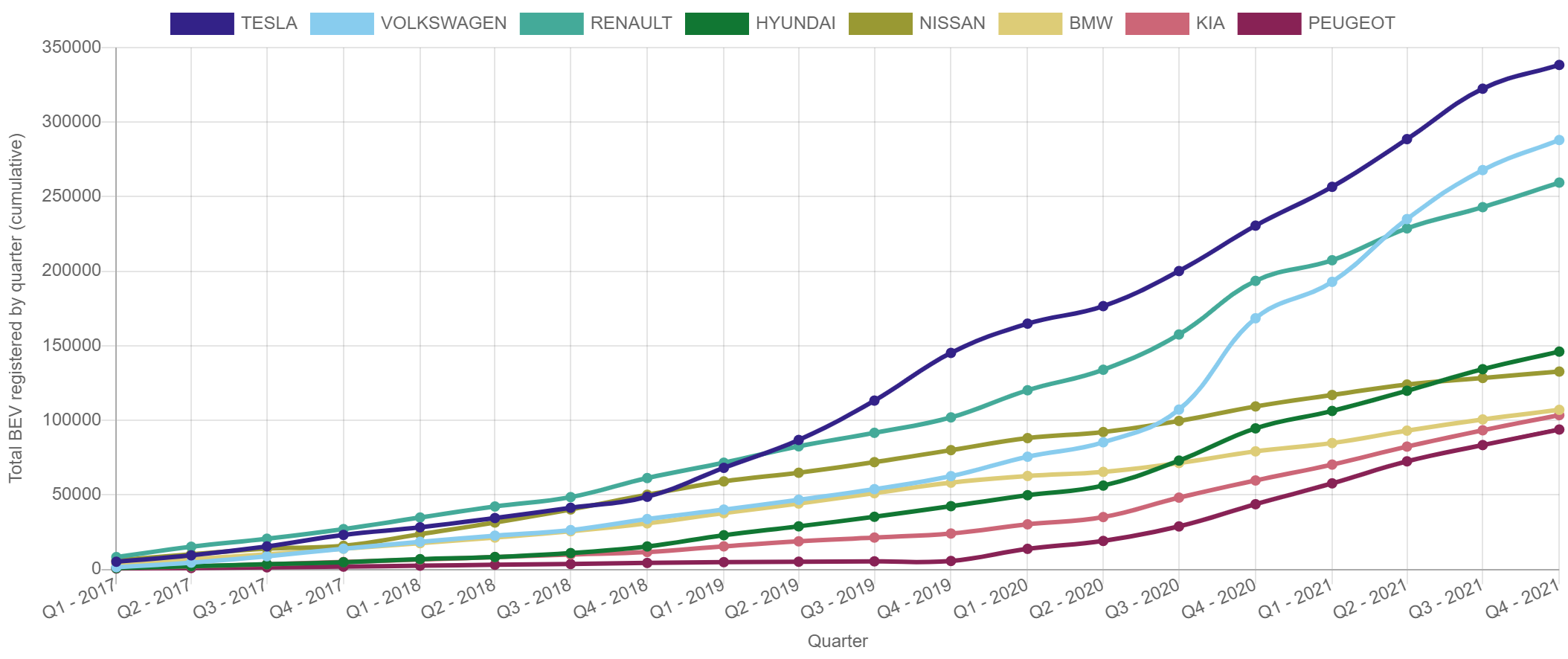 De lichtblauwe vuurpijl vanaf 21 november... Look at the Tesla line https://twitter.com/SawyerMerritt/st...226883/photo/1 Of de cijfers zelf: https://elbilstatistikk.no/ Laatst gewijzigd door Micele : 3 december 2021 om 18:31. |