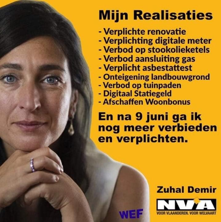 https://www.vrt.be/vrtnws/nl/2024/06...evelingen-iea/ In een voorlopig document uit mei 2021 zou het agentschap aanbevolen hebben om scenario's te voorzien om na 2025 meer nucleaire capaciteit te voorzien. In de definitieve versie van het document (maart 2022) is die aanbeveling geherformuleerd en ligt de nadruk op het uitbreiden en versterken van hernieuwbare energievoorzieningen. Volgens Demir heeft Van der Straeten de passage "eenzijdig en doelbewust geschrapt". "Er is een bilateraal contact geweest tussen het kabinet en het Internationaal Energieagentschap en men heeft bewust de paragraaf geschrapt. Ik vind dat 'not done'. Als minister moet je handelen in het algemeen belang en niet dogmatisch je partijprogramma doorvoeren." Koerdisch-Turks Vlaams energieminister Zuhal Demir dicht Tinne Van der Straete Maffiose capaciteiten toe in de beïnvloeding van aanbevelingen van het Internationaal Energieagentschap. Het is een aanval aan haar dierbare vijand, Zuhal Demir heeft als Vlaams omgevingsminister een beleid gevoerd waar Groen/Ecolo ministers maar van kunnen dromen. Uiteraard weet Zuhal Demir dat haar complimenten aan Tinne Van der Straete haar stemmen zal opleveren. Het is blijkbaar de strategie van N-VA om een Groene Demier in huis te hebben om de boeren- en burgerbelangen te vernietigen om met de Groen/Ecologisten in coalitie te gaan.