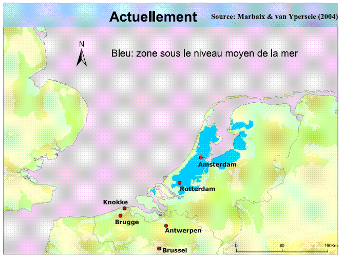 Wat blauw gekleurd is ligt nu al onder zeeniveau.