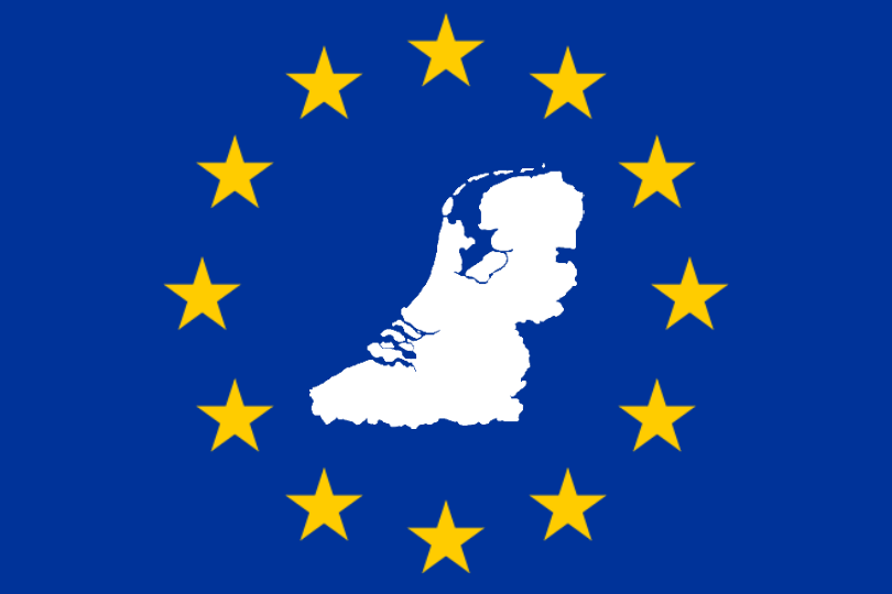 Na de talloze Prins -en Leeuwenvlaggen eens wat anders geprobeerd. Meer gericht op Europa, met een silhouet van het land zodat iedereen, dus ook de rest van Europa, meteen ziet waar het om gaat. Eenvoudig qua opzet en uitvoering. Niet dat ik het nodig vind dat de Nederlanden uiteindelijk onder deze vlag gaan, dat zou gruwelijk zijn. Veel liever de Prinsenvlag. Maar ik zie dit als een duidelijkere (tijdelijke) vlag om campagne onder te voeren, én dan zeker internationaal.