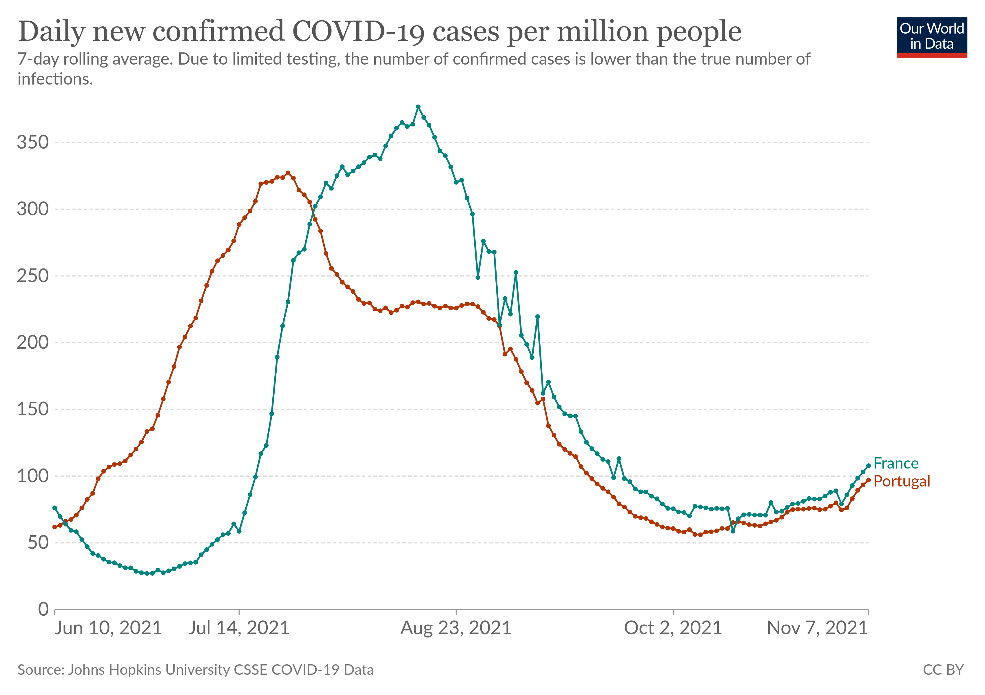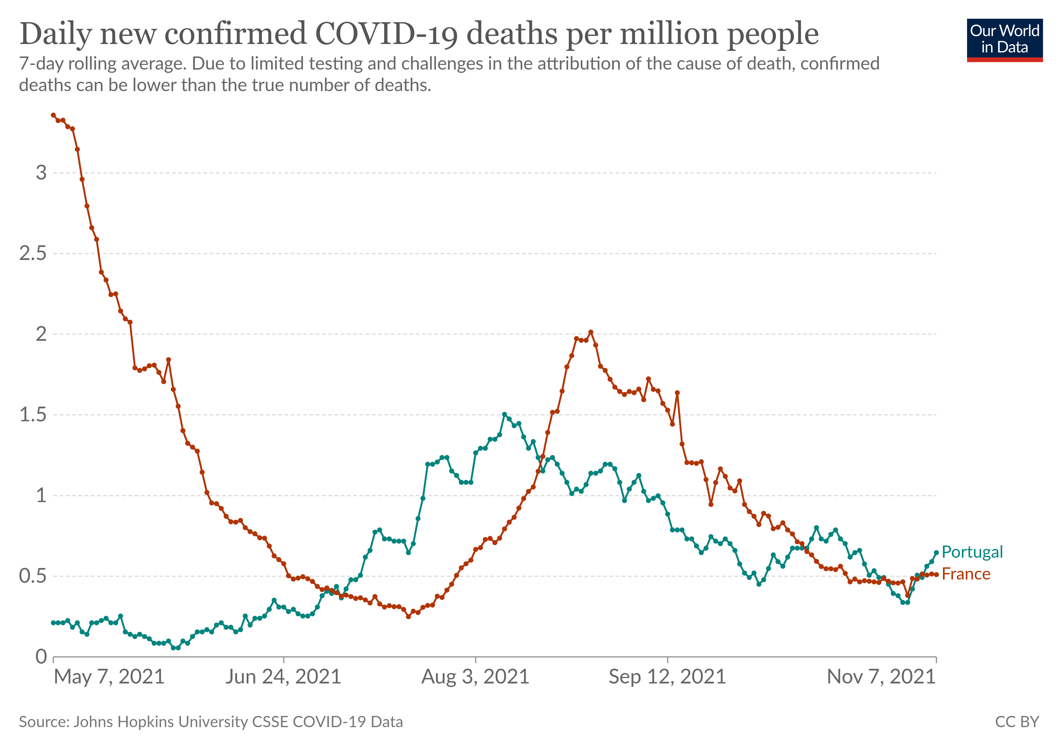 Men moet mij trouwens eens uitleggen hoe geweldig Portugal is in vergelijking met Frankrijk, waar de vaccinatie graad toch lager ligt...
