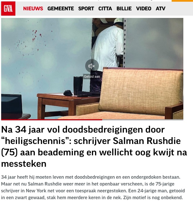 Zitten die niet al zo geïnfiltreerd overal dat het bijna niet meer mogelijk is? USA: Moslem sticht Salman Rushdie auf offener Bühne nieder  BRON bovenstaande: PI-news