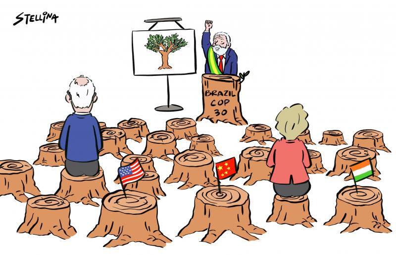Op de COP 30 in Brazilië waar pakken regenwoud werden ontbost om er wegen naar toe te leggen om de meer dan 60.000 deelnemers die per vliegtuig toekwamen over te vervoeren werd niets beslist op de beslissing na dat het ineenstortende Europa meer geld aan de arme corrupte landen moet betalen ...