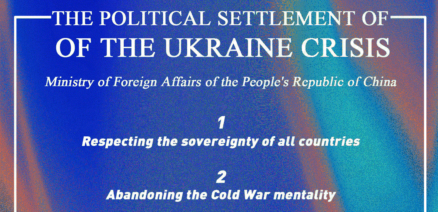 Wang Yi meets Macron ahead of security conference China urges Russia-Ukraine ceasefire, offers path to peace in position paper, shows sincerity in global governanceUit dat laatste artikel, het twaalf punten plan, waarvan de eerste twee hieronder afgebeeld, vrijgegeven op 24 februari 2023 (exact één jaar na de start van de SMO). Het plan heet "China's Position on the Political Settlement of the Ukraine Crisis". (fig.)
