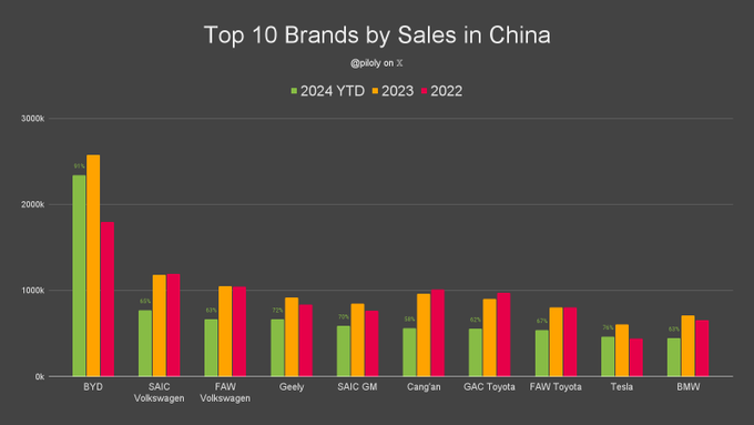 Voor de wagens die deze optie (al lang) betaald hebben, maar de regelgevers laten deze FSD-software nog altijd niet toe. Tesla boekte in september ook een recordverkoop in China en zal wslk - tesamen met BYD, die het nog beter doen - in 2024 meer als verleden jaar verkopen. Citaat: