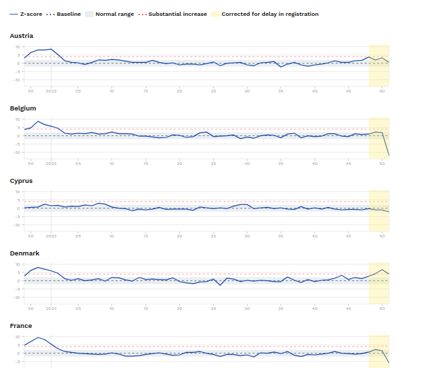 https://www.euromomo.eu/graphs-and-maps Kortom, ik vraag mij af of er daar in de normalisatie niet iets is misgegaan op myworldindata. |