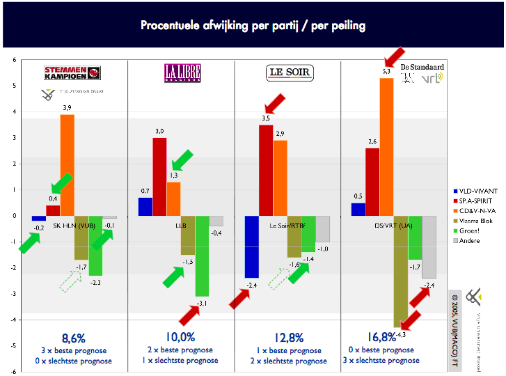 Blanco: 100% Ik vind dit zeer representatief...... 't Is te zeggen voor wat betreft ons gezinnetje. Vooral de afwijking tov de realiteit in de peiling van de VRT/De Standaard, vind ik grappig. Ruim 16%...