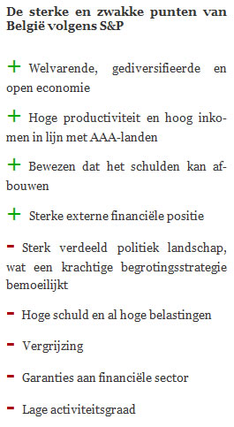Ik deel deels je mening over de ratingagentschappen. Maar de ratingagentschappen zijn een symptoom. De Belgische schuld is reëel. Als we niet de speelbal willen blijven van de boze markten, dan is de enige weg die schuld verlagen. Ze kunnen enkel met ons spelen omdat we zwak staan. We kunnen door de Euro niet doen zoals in het verleden, de BEF devalueren, en zo de problemen oplossen door collectief te verarmen. Dat is wat volgens jou de VS en het VK nu doen. Op langer termijn lijken structurele maatregelen beter om een duurzame economie uit te bouwen. En dat is volgens mij de enige manier om ook ons sociaal model (degelijke gezondheidszorg, steun aan werklozen, relatief goedkoop onderwijs, etc) in stand te houden.