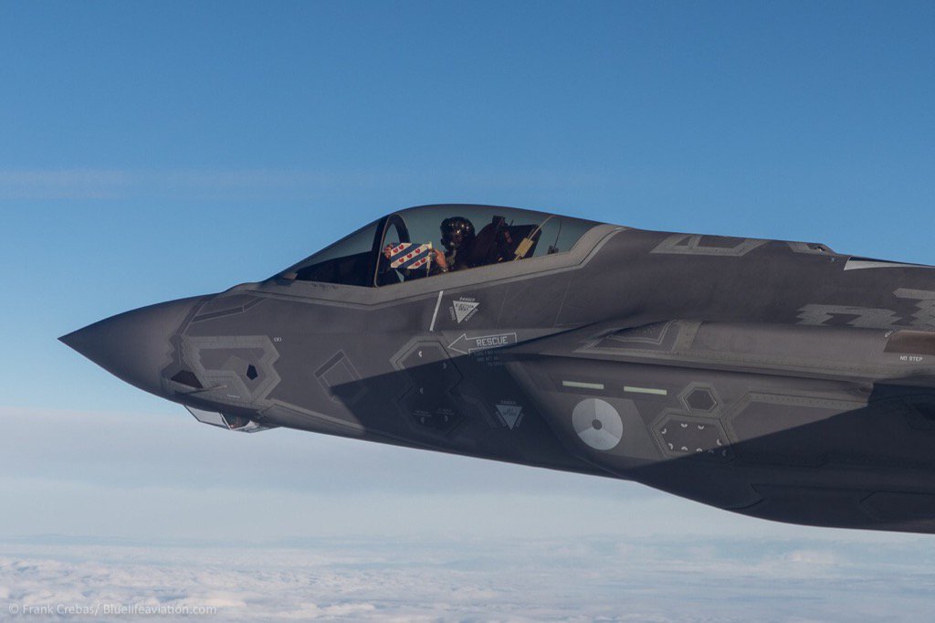 Kolonel Bert de Smit bij aankomst Quote: “Juster, 23 maaie, op 'e wei nei ús gastprovinsje Fryslân. Fan 2019 fleanbasis Ljouwert de earste F-35 thûsbasis!” |