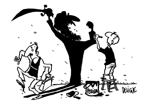 Afgelopen week schokten terroristen uit naam van de islam de hele wereld met een bloedige aanslag en een gijzeling in Parijs. Pegida wil daarom maandag met zwarte herdenkingslintjes de straat op. De Duitse minister van Justitie Heiko Maas heeft woedend gereageerd op de plannen van de Patriottische Europeanen Tegen Islamisering van het Avondland (Pegida). "Als die een beetje fatsoen hebben, zeggen ze de bijeenkomst van maandagavond af", aldus Maas. Volgens hem verdienen de slachtoffers van de terreur in Parijs, zeventien mensen, het niet "te worden misbruikt door deze ophitsers". (ANP) Weer de SPDer en minister die zich liet fotograferen met het spandoek dat de betogers die de Islam beu zijn Nazi's noemt. Laatst gewijzigd door mettewie : 12 januari 2015 om 16:35. |
