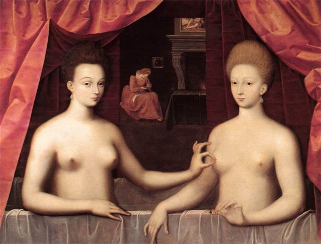 ![]() Gabrielle d'Estrées and one of her Sister (=Duchess of Villars). Fontainebleau School |