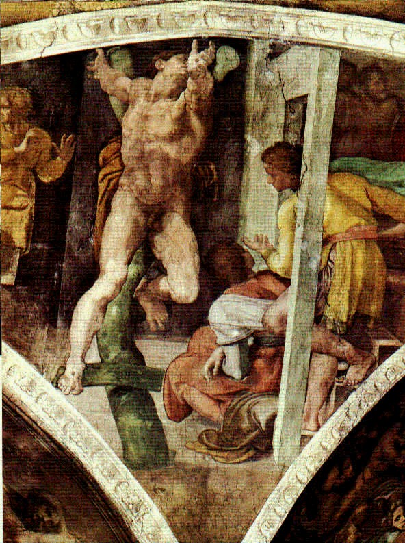 Eén van Michelangelo's fresco's in de Sixtijnse kappel.