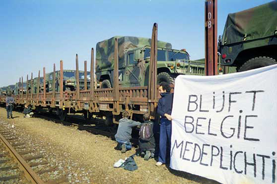 ![]() Ik zie een spoor dat behoort tot een Belgisch staatsbedrijf. Betaald met overheidsmiddelen en ter beschikking gesteld om de oorlog tegen Irak te steunen.