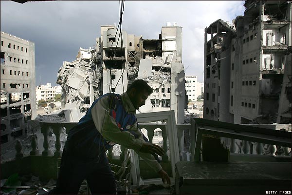 Zie hoe goed ze het hebben in Gaza. Ze hebben zelfs een machine om het puin te ruimen.