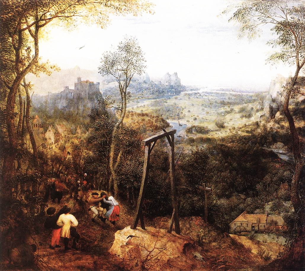 Ik hoop ooit eens naar Wenen te kunnen gaan om zijn werk aldaar te aanschouwen. Kijk naar de werken die Breughel maakte terwijl Spanje Alva naar de Nederlanden stuurde om er in korte tijd 8000 mensen om te brengen. Breughel stierf kort na de aankomst van Alva. Het is niet geweten hoe hij stierf, enkel dat hij nog niet zo oud was. Breughels laatste werk (voor zover bekend), symbolisch zoals steeds, ekster op de galg. Links onderaan een figuur die aan het schijten is. Een hartverwarmende rebel tot in de dood. Laatst gewijzigd door Johan Bollen : 15 december 2012 om 21:56. |