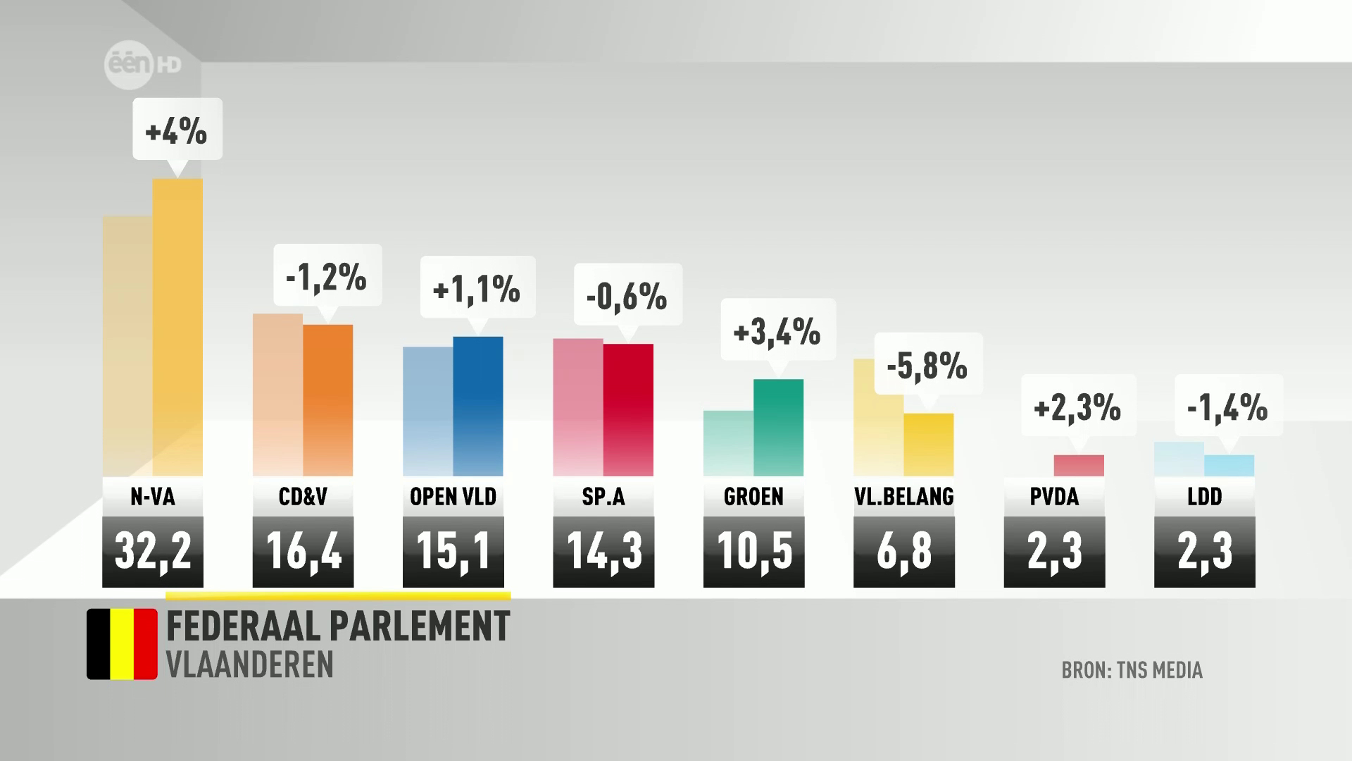 Het VB halveert nog, terwijl de N-VA niet zou stijgen . De VB-ers zouden massaal op de CD&V gaan stemmen. |