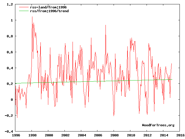 Mag ik u mijn cijfers presenteren voor RSS, om te bewijzen dat de vorige grafiek die ik postte niet uit de lucht gegrepen was? #Time series (rss) from 1979 to 2015.08 #Selected data from 1996 #Least squares trend line; slope = 0.00241621 per year, of 0.24 graden C per eeuw, verwaarloosbaar gezien de foutenmarge. Bron: http://www.woodfortrees.org/plot/rss...rom:1996/trend Mag ik herinneren aan mijn originele claim dat de aarde geen opwarming gekend heeft de laatste ~18 jaar, en dat geen enkel klimaatmodel dat voorspeld heeft? Er werden reeds ettelijke theorieen gepubliceerd om "the pause", "the standstill", "the hiatus" te verklaren, zonder echt succes. De vermakelijkste was wel dat "the heat" zich ergens diep in de oceaan zou bevinden. (c) Kevin Trenberth PS: Uw bonusartikeltje werd geschreven door ene Peter Gleick, een notoir klimaatgeobsedeerde charlatan. |