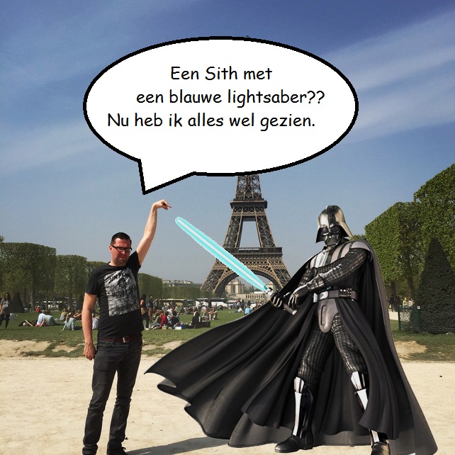 Een Sith met een blauwe lightsaber?? Nu heb ik alles wel gezien.