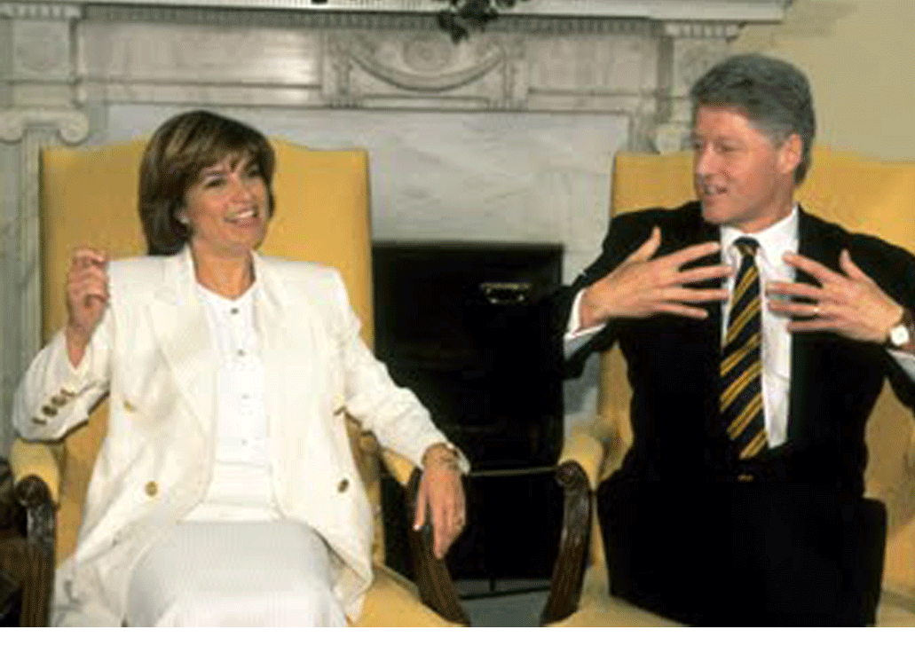 Zie het verschil tussen de vrouw van de hedendaagse Turkse president (vakkundig ingepakt als een mummie) en de vrouwelijke Turkse Premier, twintig jaar geleden (samen met Clinton)