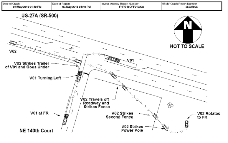 V01 is trekker+trailer, V02 = Tesla. Je ziet toch duidelijk op de tekening dat de Tesla de dwarsende trailer in het midden en precies loodrecht dwarste, loodrecht stond ook al in eerdere links. ... Following our standard practice, Tesla informed NHTSA about the incident immediately after it occurred. Citaat: