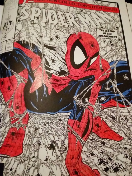 Als hem klaar is: uitsnijden, framen, ophangen. De eerste comic cover van Spiderman. |