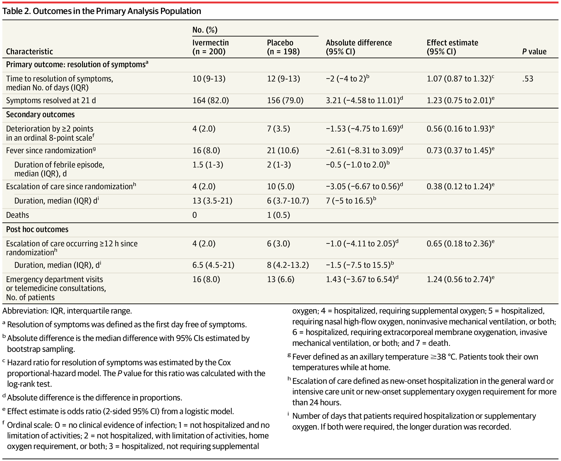 Maar ze vergeten wel 1 detail: 1 dode in de placebo groep, 0 in de ivermectine groep. Niet significant, natuurlijk, omdat de kans op sterven op 200 mensen inderdaad een halve procent is, en je dus maar 1 dode verwacht. De studie was dus te klein om dat hard te maken, het is enkel maar suggestief. We zien ook dat het aantal patienten dat verslechtert half zo groot is (4 tegen 7), en het aantal patienten dat sterkere zorg nodig had half zo groot is (4 tegen 10). Maar de studie is op te lichte gevallen en met te weinig aantallen om dat stevig aan te tonen, maw, de studie is te ZWAK. Maar het resultaat is er toch maar. Laatst gewijzigd door patrickve : 28 maart 2021 om 06:24. |