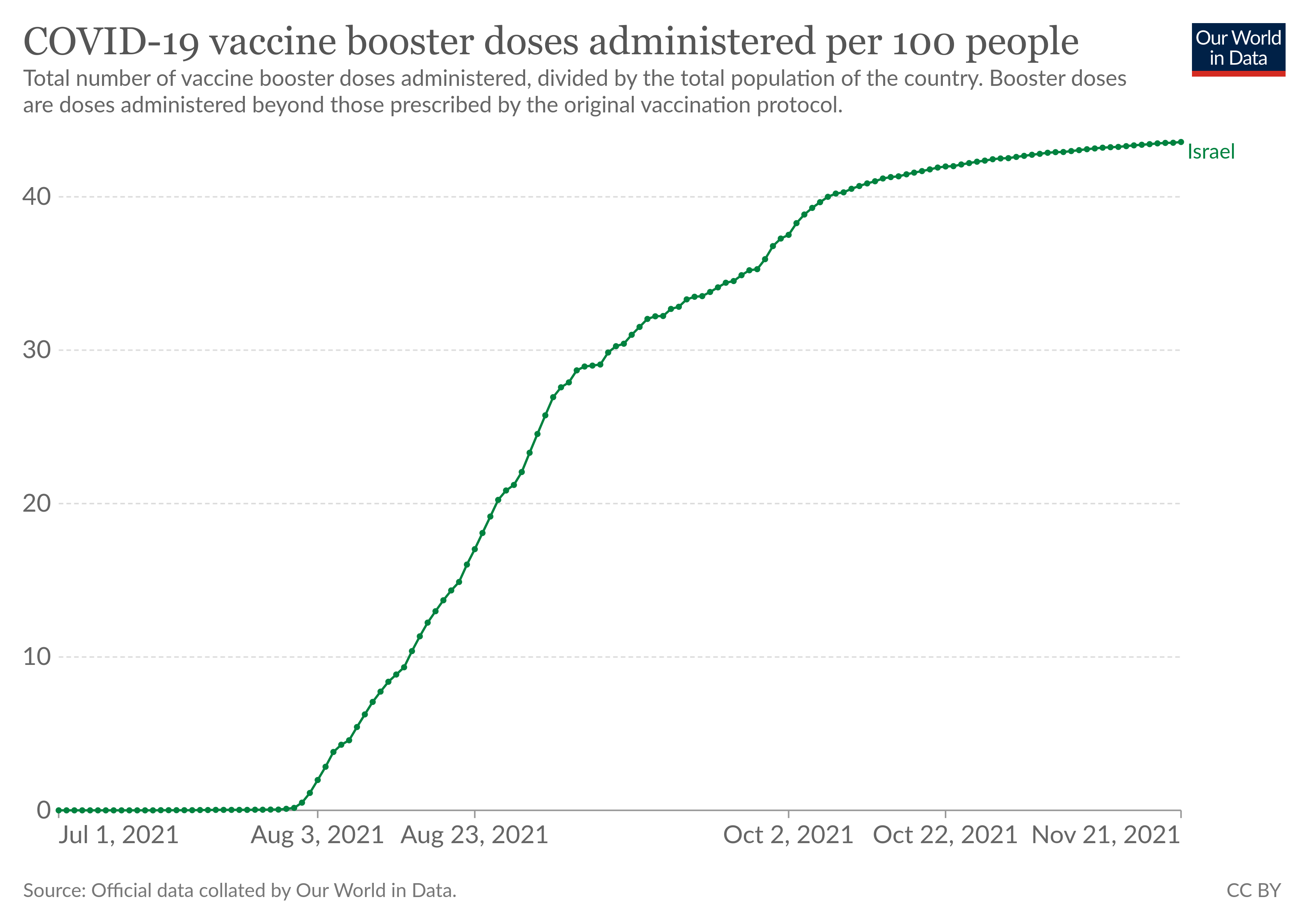 Israel is in augustus begonnen met zijn boosters. Het zou trouwens bijzonder grappig zijn dat door 40% van de bevolking te boosten, men "groepsimmuniteit" heeft, maar men in andere landen niet genoeg heeft met 95% vaccinatie he Het spreekt vanzelf dat de pauze in Israel komt van de piek die ze gehad hebben he. Niet door 40% van hun bevolking bij te prikken. Laatst gewijzigd door patrickve : 22 november 2021 om 19:01. |