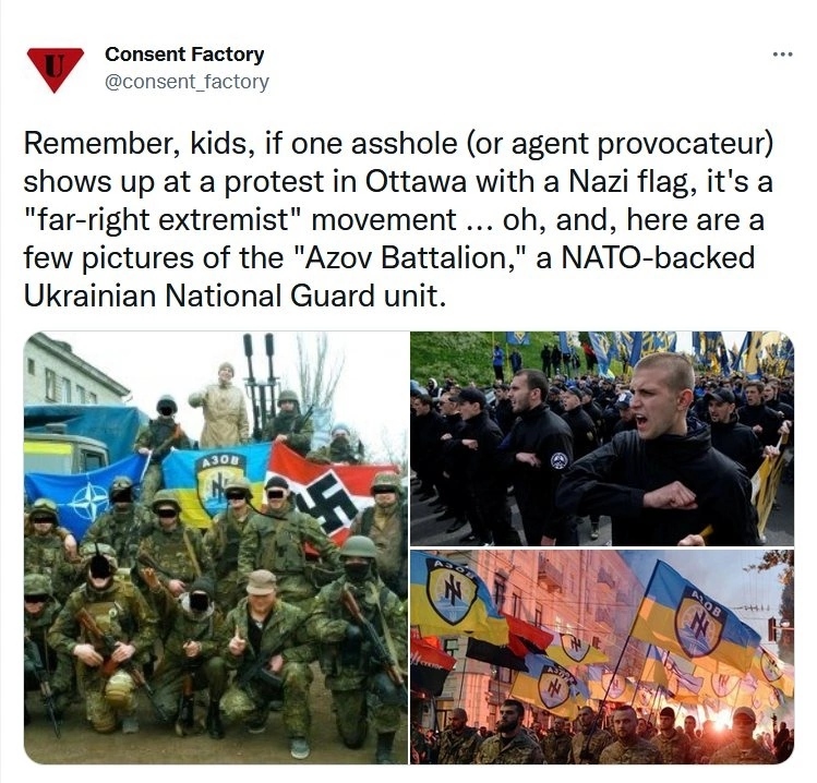 De Nazi' s hebben inderdaad zowat 8 miljoen Oekraieners uitgemoord tussen 1942 en1945 en dat weten die Azov-bataljon jongens uiteraard ook. Dat is basis geschiedenisles in Oekraiene over de Grote Patriottische oorlog. En met dat symbool zouden ze volgens jou dan aangeven dat zij, als volbloed Oekraiense nationalisten, voor wie het Oekraiense volk heilig is, zichzelf als klassieke nazi's identificeren en dus prat gaan op het vermoorden van het EIGEN Oekraiense volk (vroeger en eventueel ook nu?) Wat klopt er niet? Laatst gewijzigd door parcifal : 25 februari 2022 om 14:39. |
