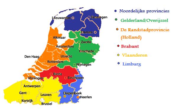 En hoe zou je dit voor je zien? Randstad, Noord en Oost en dan in het zuiden Vlaanderen, Brabant en Limburg of beide Limburgen, Noord-Brabant en de rest van Vlaanderen of nog iets anders?