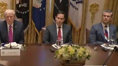 Hou de kleuren van de das rechts in beeld in de gaten. Men is aan het luisteren naar de comediant, die aan de andere kant van de tafel zit. Opgenomen gisterenavond: LINK (fig.)