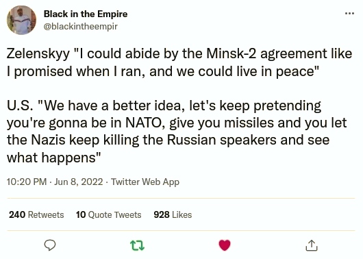 Het probleem is dat beide partijen er al wekenlang een artillerie-schietwedstrijd van maken zonder nieuwe doorbraken aan het front.Het laatste wat we op dat punt gezien hebben,was het breken van de Russische greep op Kharkiv... Laatst gewijzigd door kelt : 12 juni 2022 om 05:14. |
