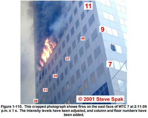 -Ten tweede, welk gebouw was weg? Je beseft toch dat de ramen die hij uitsloeg zich bevonden aan de noord-oost kant van WTC 7 waar de twee torens niet zichtbaar zijn. (zie bijlagen) Hij bevond zich aan de Noord kant en dat zegt hij rond 3.45 "I was on the north side of the building because when I was on the stairs I saw ..'North Side'" en je ziet de uitgeslagen ramen op de foto's. -Ten derde, sinds jij blijkbaar zo goed bent in 't engels, hoe zou je dit vertalen? Citaat: