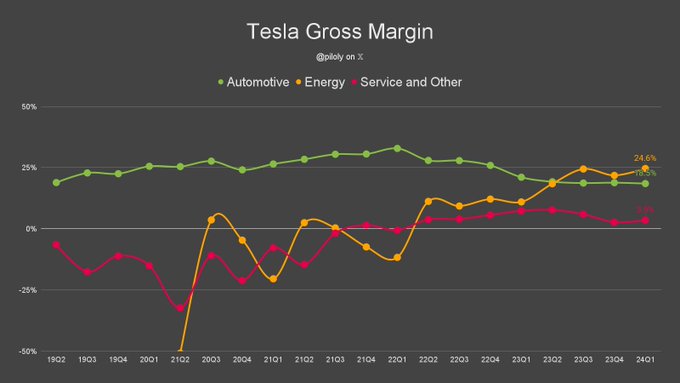 https://twitter.com/piloly/status/1782865816448385350 Tesla gross margin per segment is stable. Tesla net income by segment. via: https://digitalassets.tesla.com/tesl...024-Update.pdf More Than Just Vehicles...