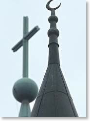 Waarom zo vasthouden aan zoiets vastgeroest als het christendom? Onze moslimvrienden voelen zich daar alleen maar gedesorienteerd door. Als we ons een beetje aanpassen, dan voelen ze zich al veel beter thuis. ![]() Laat ons wat maansikkels op onze kerken plaatsen. Veel beter zo.