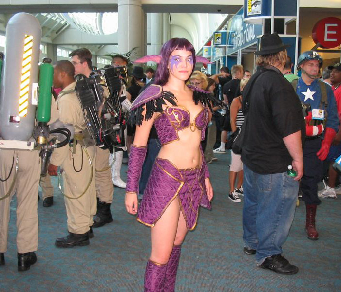Ontstaan in de Japanse mangacultuur (waar anders), het fenomeen waarbij deelnemers aan allerlei comic- manga- en gamerconventies zich verkleden in een van hun favoriete personages. Enfin, de Trekkie- en Starwars conventies kenden dat fenomeen al lang uiteraard, maar dat was toen nog heel hard nerdy. De Japanse cosplay haalde het uit dat negatieve imago en maakte er een echte kunst van, sindsdien worden alle nerd- en geekevenementen in de wereld opgevrolijkt door een hoop gewoonlijk wreed knappe geek-chics in allerlande ronding-accentuerende cosplay-dracht. Waarmee meteen ook bewezen wordt dat geeks en nerds wel degelijk vrouwelijk schoon weten te appreciëren. Als voorbeeld, een aantal (doorgaans op Warcraft gebaseerde) dameselfen (night-elves voor de kenners). |