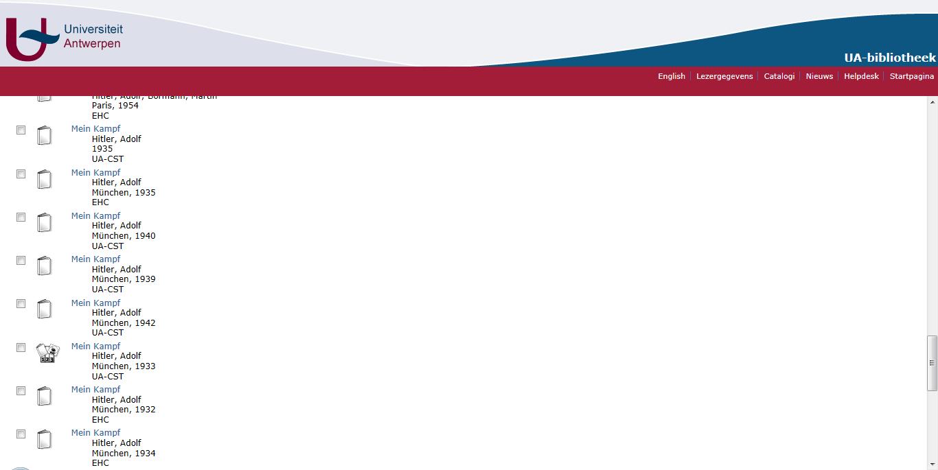 Feit is wel dat meerdere jaren geleden Mein Kampf nog te koop was in de Standaard Boekhandel. Ik lees op het internet dat het copyright in 2015 wettelijk afloopt. Volgens andere wetgeving verloopt het copyright echter vijftig jaar na de dood van de auteur. http://www.damaschke.de/notizen/inde...#dokumentation |