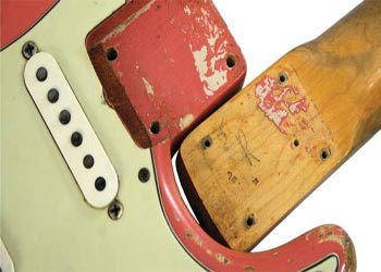 For what it’s worth : mijn man bekeek zonet de site waar uw foto vandaan komt : http://www.premierguitar.com/Magazin...ian_Coral.aspx Zijn onmiddellijke reactie bij het zien van onderstaande foto was : dit is fake, die gitaar was origineel niet in die kleur… |