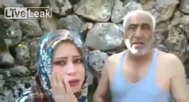 Hier zie je een Imam uit de omgeving van Idlib, Syrië, die op heterdaad betrapt wordt bij het neuken van de dochter van z'n dochter.