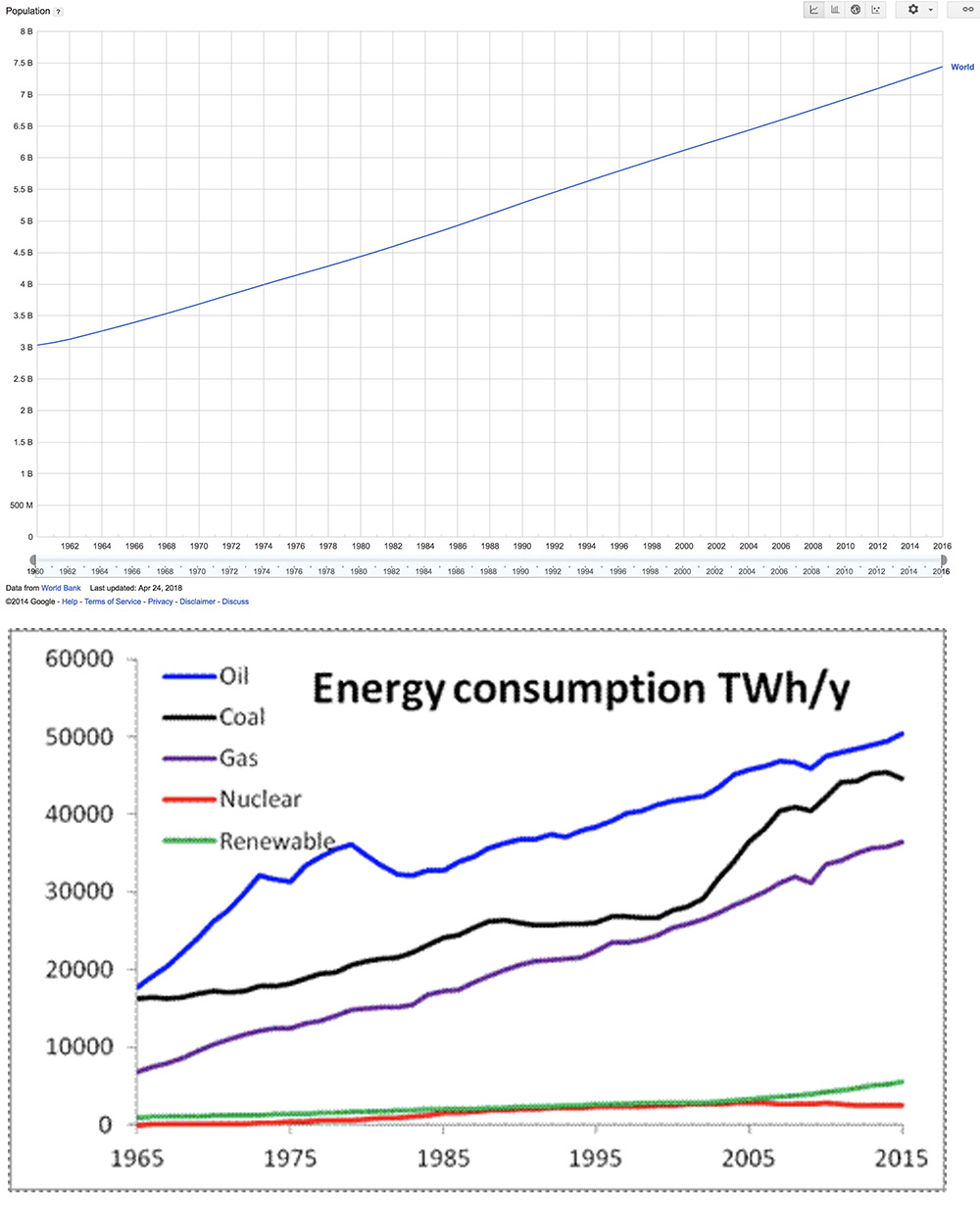 Met de nieuwe slimme metertellers willen ze daar de volgende decennia wel iets aan doen, elektriciteit zou opnieuw een variabele prijs krijgen en zware verbruikers zouden automatisch afgeschakeld worden bij te lage capaciteit. De toestellen zoals wasmachines zouden wel moeten aangepast worden om hiermee te kunnen omgaan en/of thuisbatterijen zouden veel goedkoper moeten worden. Ooit komt het wel in orde maar ik durf daar geen jaar op te plakken want het energieverbruik zal de volgende 50 jaar alleen maar stijgen. Wat deze 2 grafieken wel duidelijk maakt waarom dat is. |