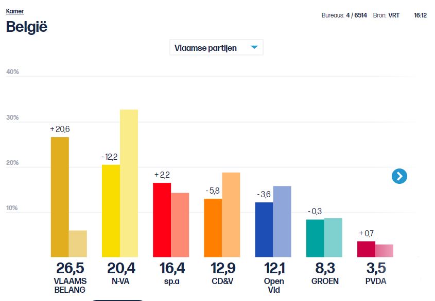 het ziet er naar uit dat er maar één winnaar zal zijn vandaag: het Vlaams Belang. Zelfs die gedoodverfde winnaar, Groen, verliest procenten op dit moment