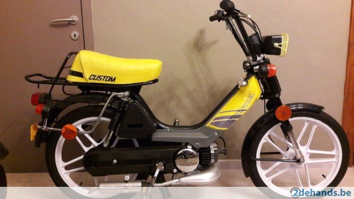 Kostte toen iets (1986) van een 40,000Bfr (als ik mijn grootvader, die hem grotendeels betaalde, mocht geloven). Maar nooit heb ik daar zoveel plezier aan beleefd als aan de wrakken waar ik vanaf mijn 11de verjaardag mee rondscheurde. Die nieuwe was te duur om zo maar wat in't wilde weg aan te gaan sleutelen. Maar hij reed wel goed en 't was de chiqueste brommer in't dorp dus de meiden kwamen er gratis bij.