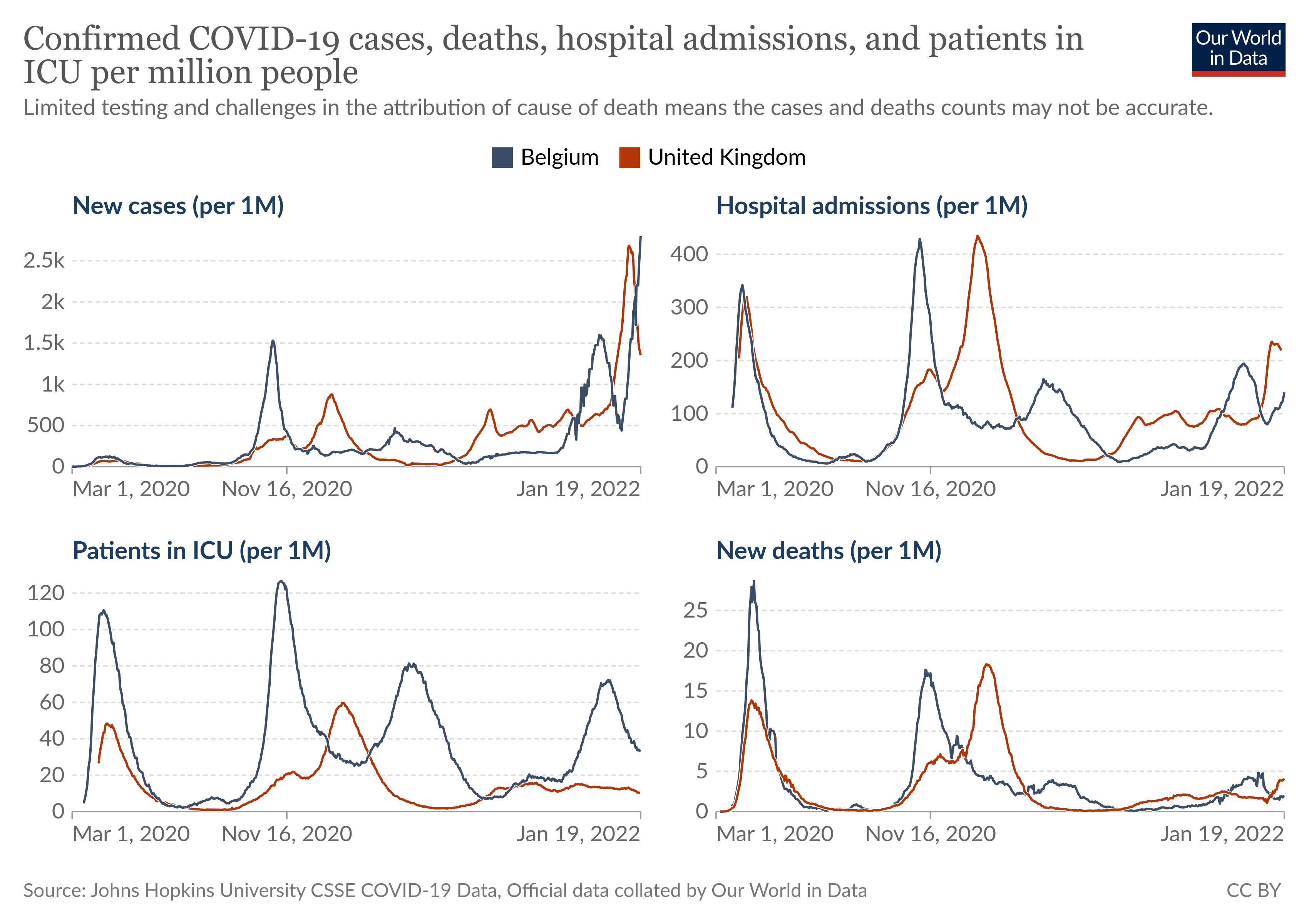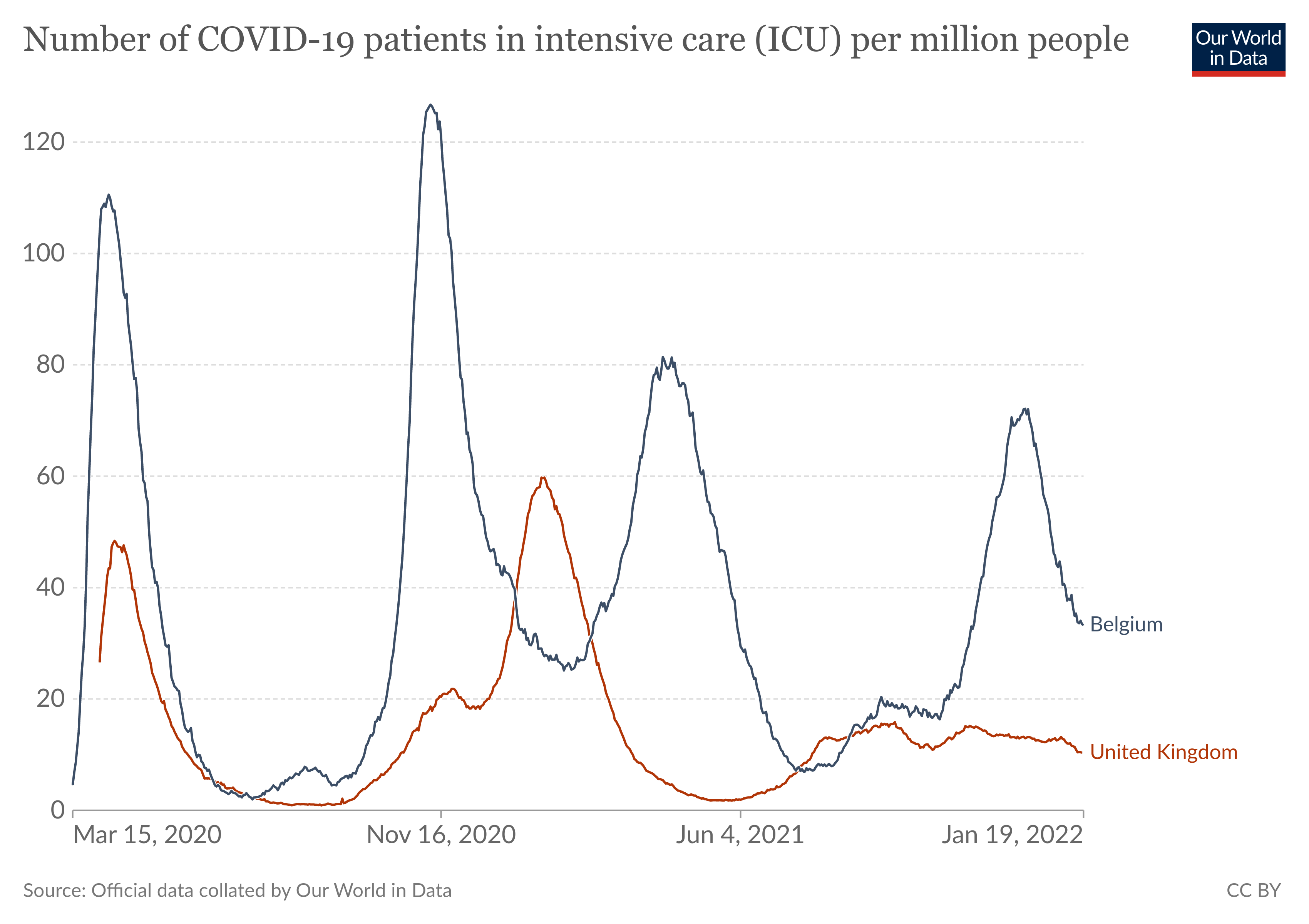Al ware het maar omdat mensen die voor andere redenen op IZ zullen komen, ook wel positief zullen testen he Maar ik begrijp niet dat jij zelf geen klein beetje "onderzoek" doet om daar ZELF een idee van te krijgen. Kijk naar de UK. De piek is daar voorbij. https://ourworldindata.org/explorers...ountry=BEL~GBR Je ziet dat er daar wel ziekenhuis opnames waren, maar geen IC opnames. Een beetje zuurstof helpt de meest bange omicron patienten er meestal door. |