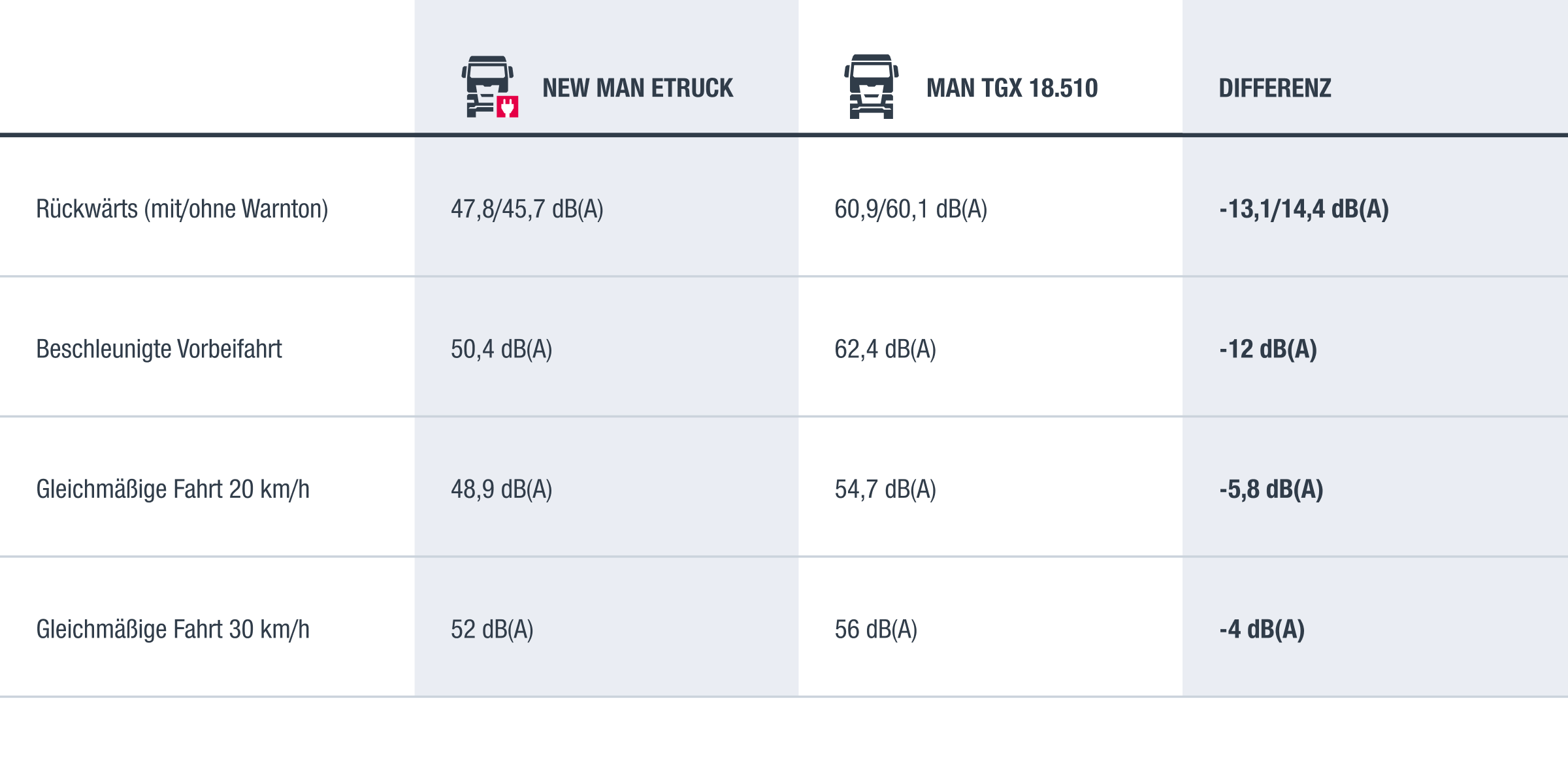 Proefondervindelijk gemeten verschillen tussen dieselvrachtwagen en electrische vrachtwagens zijn laatste -4 dB(A) tot -14,4 dB(A) stiller, of gemiddeld half zo luid tot 30 kmu, bij acceleratie en vooral achteruit rijden is het geluidsverschil het hoogste: https://trans.info/de/elektro-lkw-ha...-diesel-357499 https://www.man.eu/corporate/de/expe...se-126656.html