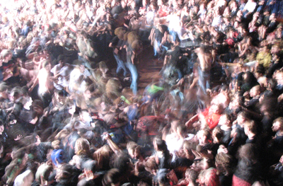 een versleten jeans en een flanellen hemd en ge waart "in" zonder uren voor de spiegel te hebben moeten staan. Hell, grungers hadden niet eens een spiegel. |