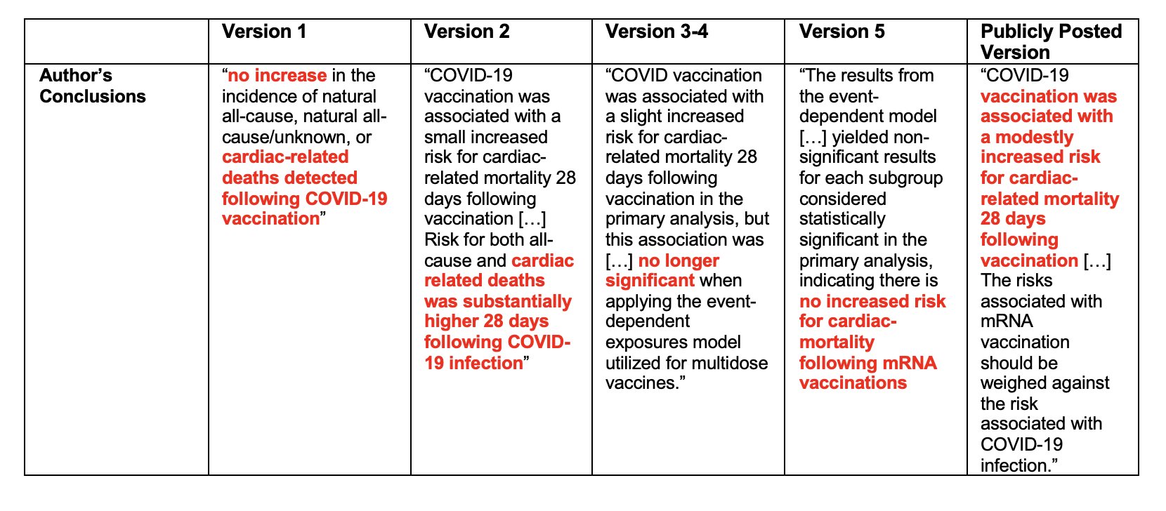 Enkele quotes: "Now, draft versions of the analysis obtained by the Tampa Bay Times show that this recommendation was made despite the state having contradictory data. It showed that catching COVID-19 could increase the chances of a cardiac-related death much more than getting the vaccine. ... That data was included in an earlier version of the state’s analysis but was missing from the final version compiled and posted online by the Florida Department of Health. Ladapo did not reference the contradictory data in a release posted by the state. The Times’ records request asked for all previous versions of the state analysis made public on Oct. 7. The documents show that, before the final version was released, at least five drafts had been produced. One version included a data table showing the number of cardiac-related deaths from infection. The conclusion in four of the drafts provided a counterpoint to Ladapo’s assertion about the vaccine. ... Four epidemiologists who reviewed the drafts said the omission is inexplicable and flawed from a scientific standpoint. They said that, based on the missing data, Ladapo’s recommendation should be rescinded. Matt Hitchings, an infectious disease epidemiologist and professor of biostatistics at the University of Florida, said it seems that sections of the analysis were omitted because they did not fit the narrative the surgeon general wanted to push. “This is a grave violation of research integrity,” Hitchings said. “(The vaccine) has done a lot to advance the health of people of Florida and he’s encouraging people to mistrust it.” ... It reported that there was only a “modest” increased risk from the vaccine except for males ages 18 to 39, where it found an 84% higher incidence of cardiac-related deaths. Ladapo cited that number in the state’s nonbinding recommendation, saying the “abnormally high” risk of cardiac complications from a COVID-19 shot “likely” outweighs the benefits of vaccination. That finding was based on 20 deaths, too small a sample size for such a far-reaching conclusion, according to a column by four University of Florida epidemiologists that highlighted concerns and flaws with the analysis. The scientists also noted that Ladapo’s finding was not backed up with clinical data proving that the cause of deaths fits the criteria. Further, the data on the risk of infection omitted from the published report shows that catching COVID presents a far greater risk for that same age group. For Floridians ages 18 to 24, the incidence of cardiac-related deaths from infection was more than 10 times higher than from the vaccine and more than five times higher for ages 25 to 39. That data was not broken down by sex. The state epidemiologists who worked on the report also arrived at a different conclusion than Ladapo, the drafts suggest. ... “The risk associated with COVID-19 infection clearly outweighs any potential risks associated with mRNA vaccination,” one version states. “The small risk associated with mRNA vaccination should be balanced against the much larger risk associated with COVID-19 infection,” another version says. A similar sentence appeared in the published conclusion but the “much larger” modifier had been removed. ... The state’s analysis was also criticized for not including a sensitivity analysis, a method of proving that the results remain consistent even when changing some of the assumptions used in the calculations. A sensitivity analysis was present in three versions of the draft and suggests that the increased risk for young men from the vaccine is not significant, said Jonathan Laxton, a physician and assistant professor of medicine at the University of Manitoba. ... After reviewing the draft reports, Hitchings said the final analysis is akin to academic dishonesty. “You can call it a lie by omission,” he said." Een draadje op Twitter: https://twitter.com/kmpanthagani/sta...56712263962628 Zoek de 7 verschillen: