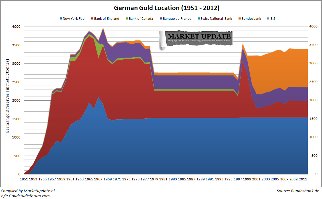 De locatie van de duitse goudvoorraad, de laatste zestig jaar.