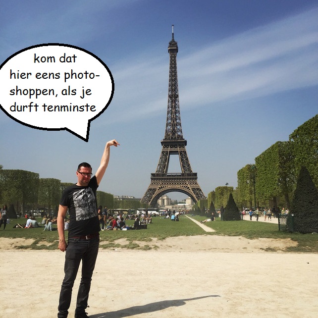 ![]() Ik kan niet fotoshoppen maar de hulk op de Eiffel toren met die vent zijn arm in z'n gat lijkt me ook wel grappig.