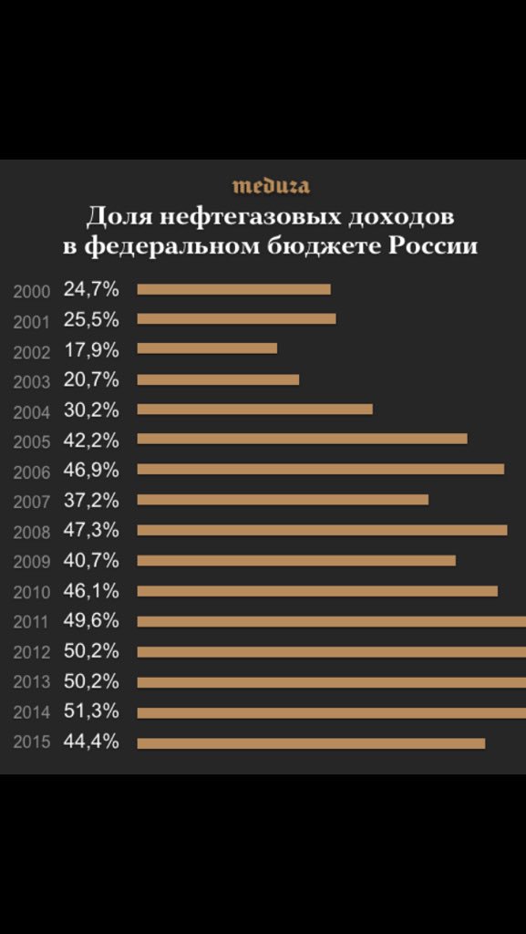 ![]() Mooi grafiekje van het aandeel olie- en gas-inkomsten door export in de russische begroting.