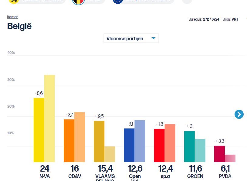 Eerste uitslagen kanton Antwerpen : zowel VB als NV-A stijgen. Dat had ik niet verwacht. Volgens mij stemmen zelfs Marokkanen op het VB na het vluchtelingen en migratiepact gelezen te hebben.