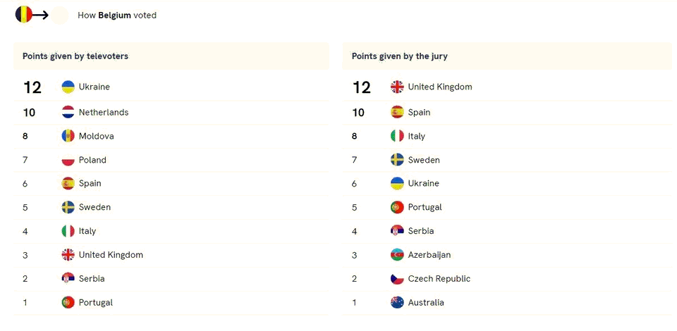 Trouwens, de Hollanders moeten niet zagen, ze hebben 10 punten gekregen van de Belgen.